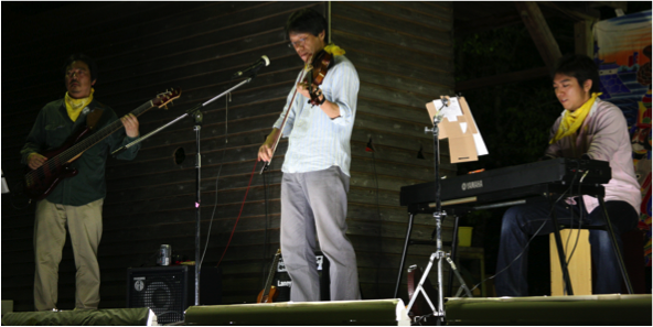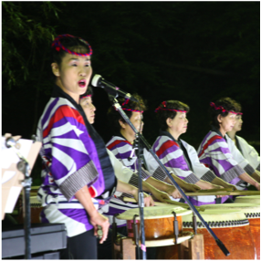 地元の 日近太鼓保存会と「やしのみ&フレンズ」の演奏