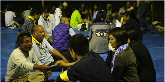 一般参加者、スタッフと地元のみなさんが車座になって4つの問題について討論